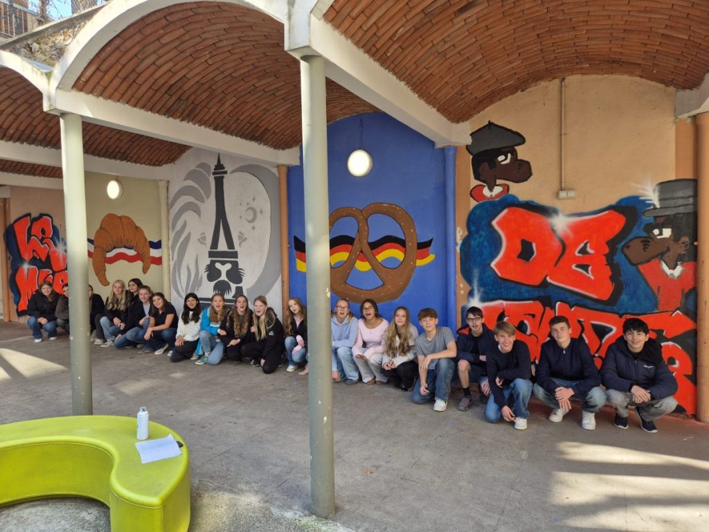 Auch in diesem Jahr konnten wieder 21 Schülerinnen und Schüler nach Paris reisen und dort schöne Tage in ihren Gastfamilien verbringen. Neben Sightseeing, der Jagd auf Souvenirs und dem Probieren französischer Spezialitäten – allen voran Baguettes, Croissants, Crêpes und Macarons – standen natürlich auch gemeinsame Aktivitäten mit der französischen Gruppe auf dem Programm: Wir wurden an unserer Partnerschule mit einem kleinen Frühstück begrüßt, durften den Blick auf den Eiffel-Turm aus der obersten Etage genießen und gemeinsam eine „Mur de l´amitié“ künstlerisch gestalten.